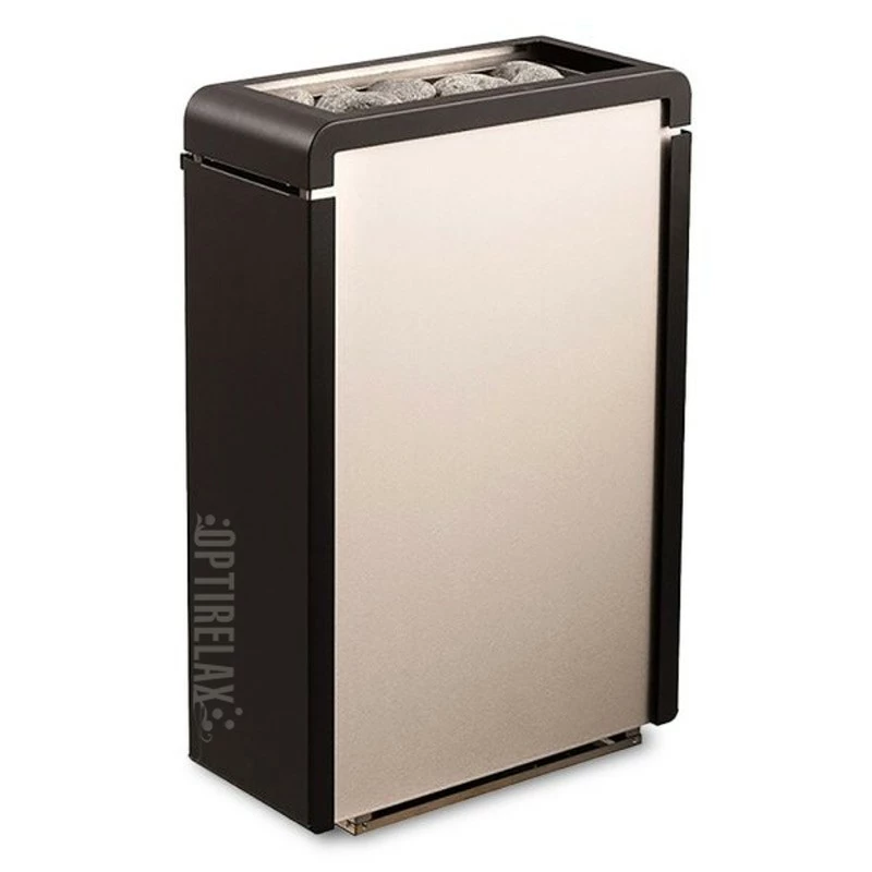 Für die Planung der Concept R mini-Reihe wurde die neueste Saunatechnologie genutzt. Sicherheitsfördernde Eigenschaften, wie eine Design-Ofenreling, machen den Saunaofen für kleine Saunen populär. Die Reling aus Holz verleiht dem schwarzen Stahl des Saunaofens auch Sanftheit.