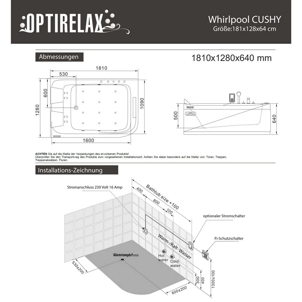 2 Personen Indoor Whirlpoolbadewanne – OPTIRELAX® Cushy – PRO LINE